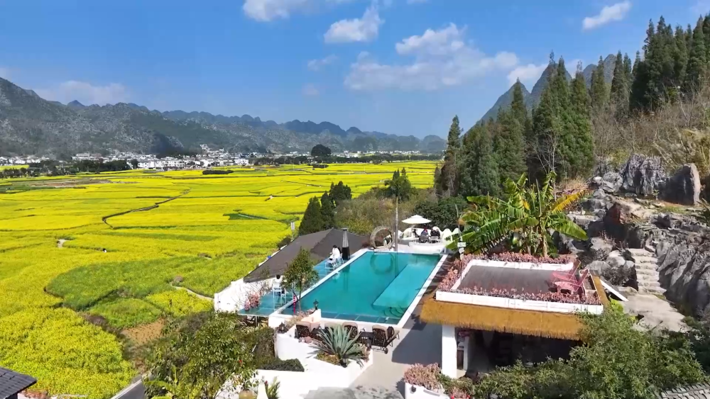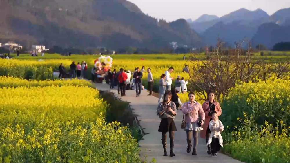 眼下,貴州省興義市萬(wàn)峰林景區(qū)內(nèi)的6000多畝油菜花競(jìng)相綻放,盛開的油菜花與峰林、田園、村莊、河流交相輝映,金色花海染盡鄉(xiāng)野,形成一幅美麗的山水田園畫,吸引了眾多省內(nèi)外游客前來觀賞打卡,欣賞春日美景。
