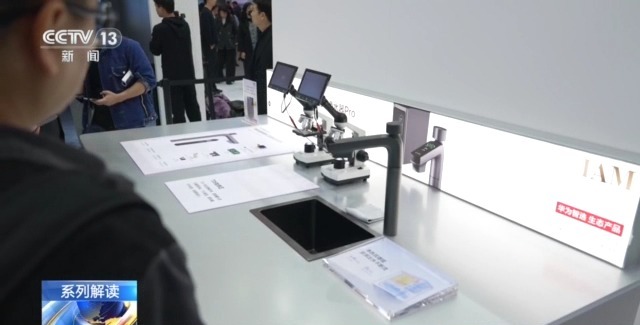 展館里AI賦能無處不在,就連不起眼的水龍頭,也應用了人工智能技術(shù)。