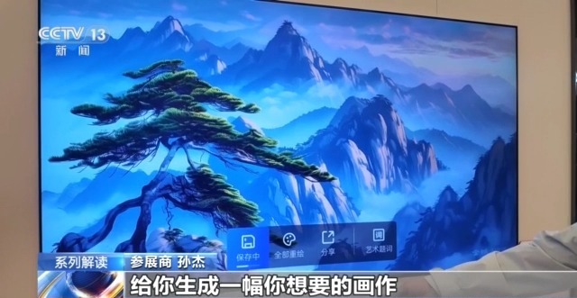 參展商 孫杰:只要說出你想要的畫面內(nèi)容,它就會很短的時間給你生出一幅你想要的畫作。既可以作為自己的畫作在電視上欣賞,也可以通過微信掃碼復制到電腦手機上作為桌面。