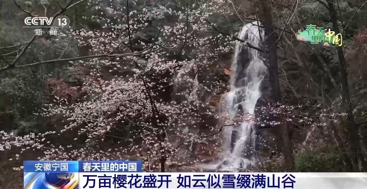 每年的3月中旬至4月中旬,安徽宣城寧國市萬家鄉(xiāng),上萬畝野櫻陸續(xù)綻放,如云似雪綴滿山谷。