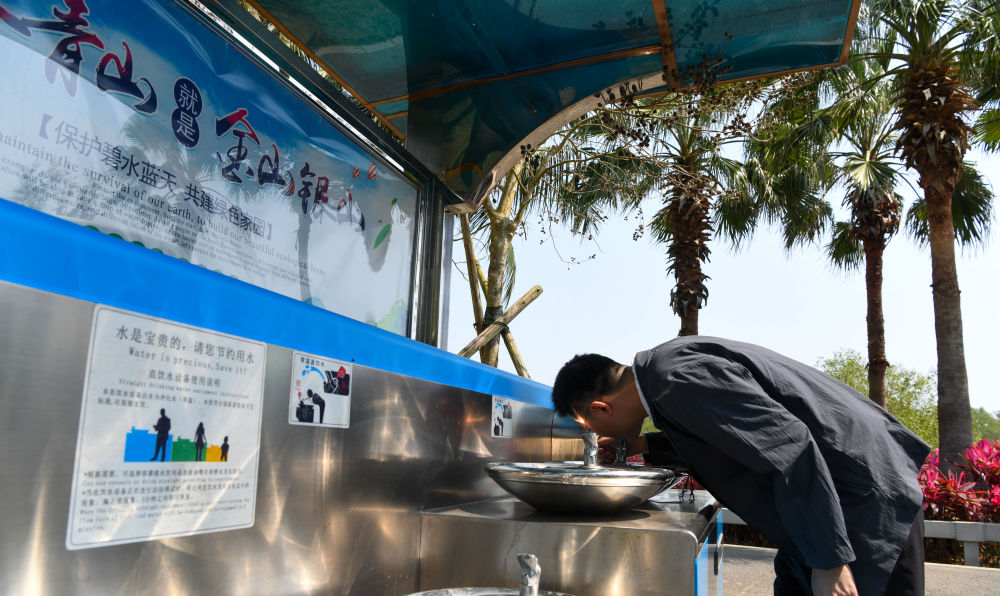 3月25日,參會人員在博鰲零碳示范區(qū)飲用常溫直飲水。