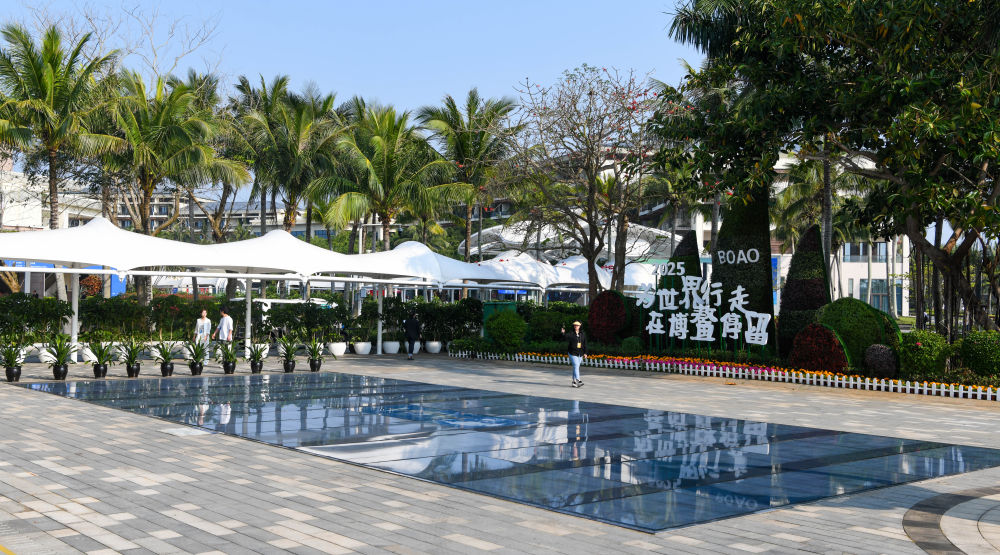 這是3月25日拍攝的博鰲零碳示范區(qū)循環(huán)花園內(nèi)的景觀。