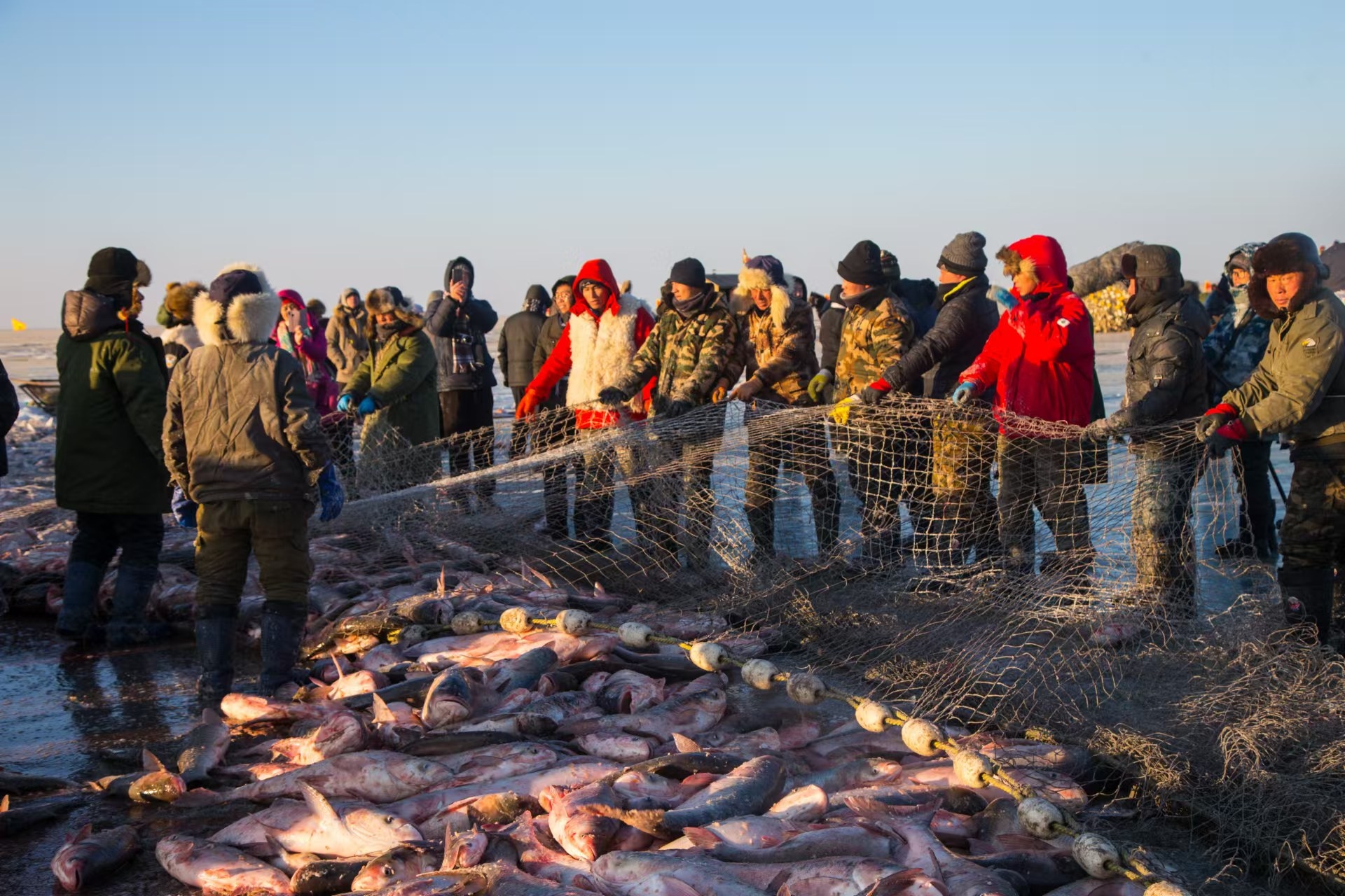 祭湖醒網、馬拉絞盤、冰下走網……一場冬捕盛宴正在千里冰封的查干湖上演。頭戴狐皮帽、身披羊皮襖、手持令旗的“魚把頭”一聲令下,巨大的漁網被緩緩從冰下拉出,隨著數萬條活魚從水中“躍”起,“冰湖騰魚”的盛景讓傳承千年的漁獵文化在冰天雪地中再度“沸騰”。