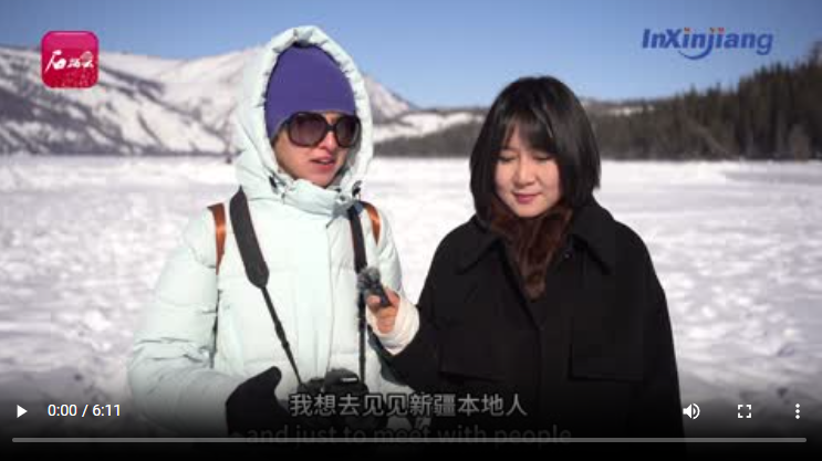 受邀做客本期《InXinjiang》欄目訪談的,是來自白俄羅斯的記者瑪麗娜。這是她第二次到新疆,走在喀納斯湖冰面上,她被眼前的美景和當(dāng)?shù)刎S富多彩的文化活動(dòng)深深吸引?,旣惸入y掩內(nèi)心歡喜:“現(xiàn)代化基礎(chǔ)設(shè)施與自然美景相得益彰,這是我喜歡新疆的理由?!?/p>