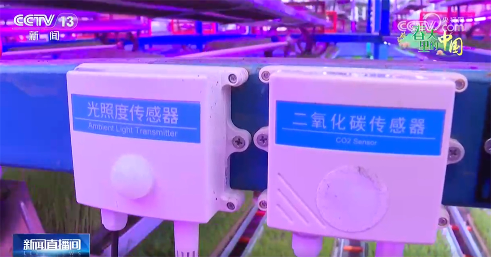 來(lái)到這個(gè)育秧車間,我們可以看到現(xiàn)在的秧苗都已經(jīng)坐上電梯了。在立體循環(huán)育秧架上,一盤盤綠油油的秧苗坐著升降梯輪流接受光照。架子上還裝有智能傳感器,把溫度、濕度等信息實(shí)時(shí)顯示在大屏上。同時(shí),還可以用手機(jī)進(jìn)行遠(yuǎn)程操控,根據(jù)秧苗長(zhǎng)勢(shì)自動(dòng)進(jìn)行補(bǔ)光、噴淋。