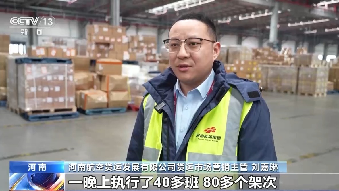河南航空貨運(yùn)發(fā)展有限公司貨運(yùn)市場(chǎng)營(yíng)銷主管 劉嘉琳:最繁忙的時(shí)候,一晚上執(zhí)行了40多班,80多個(gè)架次。每一個(gè)環(huán)節(jié)、每個(gè)時(shí)間節(jié)點(diǎn)我們都有監(jiān)控,哪個(gè)節(jié)點(diǎn)出現(xiàn)問題了,耽擱的時(shí)間比較長(zhǎng)了,后臺(tái)對(duì)現(xiàn)場(chǎng)進(jìn)行提醒。高峰期加派人員,大大提高了作業(yè)效率。