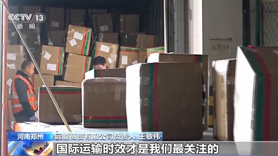 河南中大門國(guó)際貨運(yùn)有限公司空運(yùn)總監(jiān) 柳震:從國(guó)內(nèi)工廠提貨,到整個(gè)航班在境外口岸落地,我們整體的時(shí)效是可以控制在72小時(shí)之內(nèi),完全符合高效運(yùn)轉(zhuǎn)的時(shí)效要求。