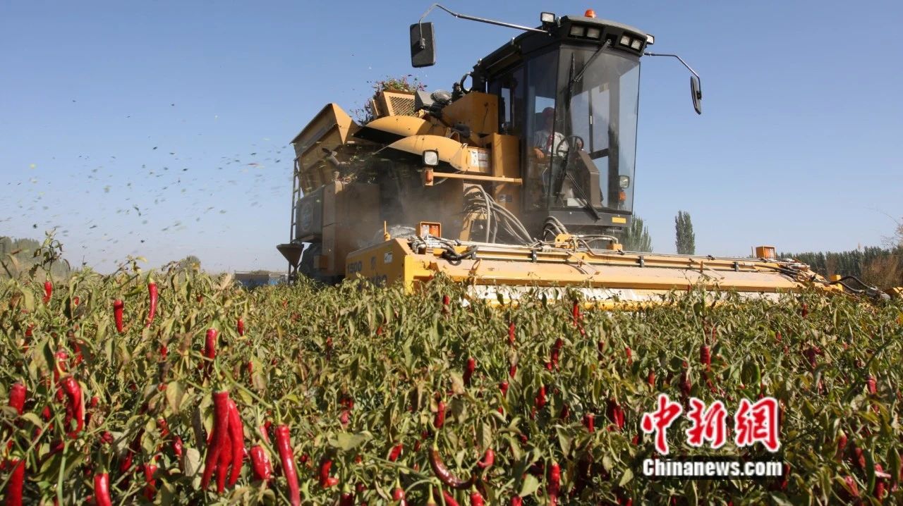 焉耆縣機(jī)械采收工業(yè)色素辣椒。楊志榮 攝
