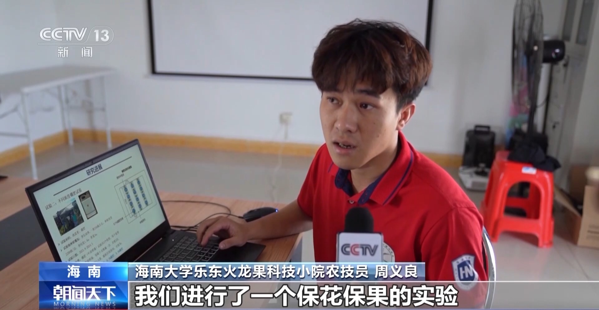 海南大學(xué)樂(lè)東火龍果科技小院農(nóng)技員 周義良:根據(jù)這個(gè)現(xiàn)狀,我們進(jìn)行了一個(gè)?;ū9膶?shí)驗(yàn),通過(guò)不同濃度的硼肥、氨基酸肥、授粉和溫度調(diào)控來(lái)進(jìn)行實(shí)驗(yàn),坐果率提升了20%左右。