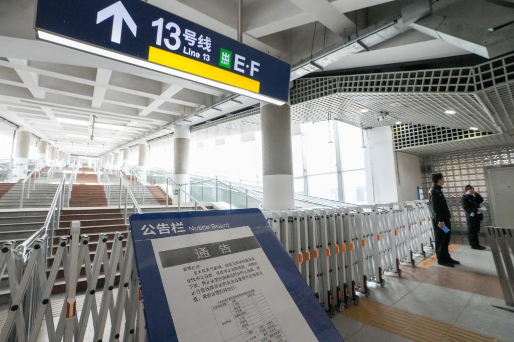 4月12日,北京地鐵西直門站13號(hào)線換乘入口張貼了部分軌道交通線路因大風(fēng)天氣停運(yùn)的通知。當(dāng)日,我國(guó)北方多地出現(xiàn)大風(fēng)降溫天氣。新華社記者 鞠煥宗 攝