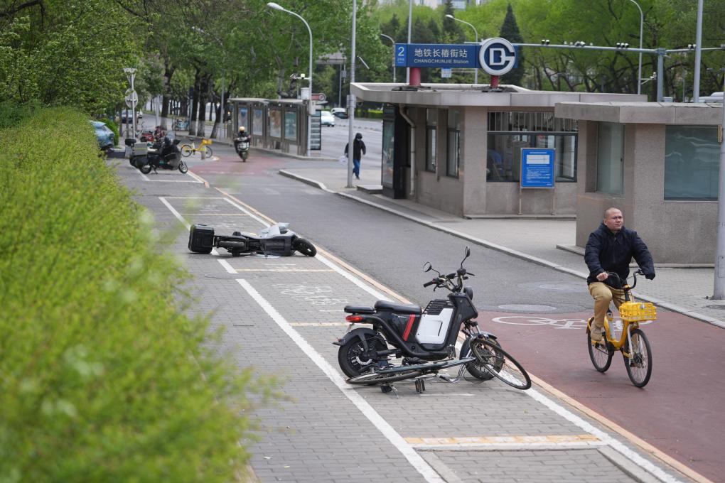 4月12日,一名男子在北京的大風(fēng)中騎行。當(dāng)日,我國(guó)北方多地出現(xiàn)大風(fēng)降溫天氣。新華社記者 金立旺 攝
