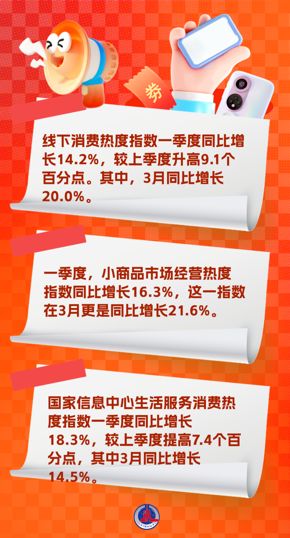 數(shù)據(jù)顯示,一季度,我國(guó)消費(fèi)市場(chǎng)亮點(diǎn)紛呈,呈現(xiàn)向好態(tài)勢(shì)。從線下消費(fèi)來(lái)看,國(guó)家信息中心線下消費(fèi)熱度指數(shù)一季度同比增長(zhǎng)14.2%,較上季度升高9.1個(gè)百分點(diǎn)。其中,3月同比增長(zhǎng)20.0%,比前兩個(gè)月高出4.7個(gè)百分點(diǎn),增速持續(xù)攀升。
