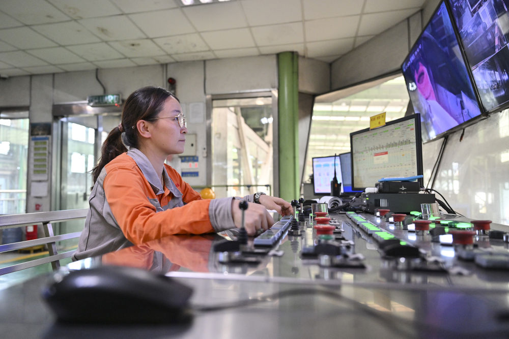 2024年6月13日,在馬來(lái)西亞彭亨州馬中關(guān)丹產(chǎn)業(yè)園聯(lián)合鋼鐵(大馬)集團(tuán)公司工廠,中國(guó)員工在智能控制室工作。