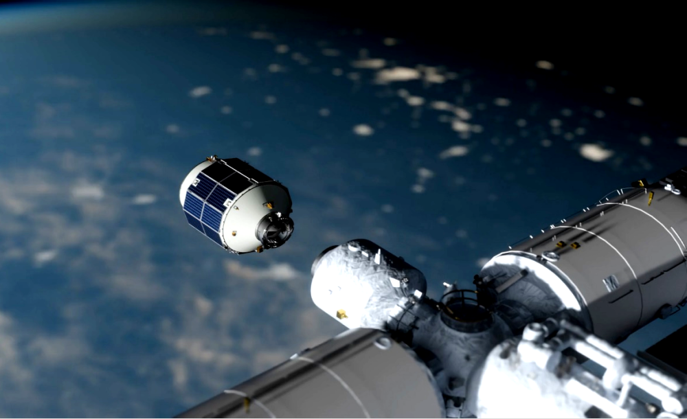 輕舟貨運(yùn)飛船與中國空間站對(duì)接示意圖。(中國科學(xué)院微小衛(wèi)星創(chuàng)新研究院供圖)
