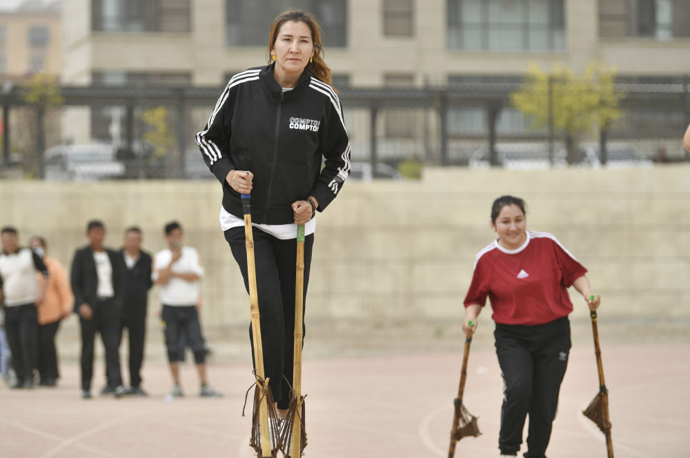 從上學(xué)時(shí),柔鮮古麗就熱衷于參與各項(xiàng)體育活動(dòng)。無(wú)論是籃球、排球還是最擅長(zhǎng)的高腳競(jìng)速,她總會(huì)擠出時(shí)間報(bào)名參賽。她說(shuō),體育就像一道光,多年來(lái)照亮了大漠邊緣的生活?!八粌H可以鍛煉身體,也能舒緩我在生活中遇到的壓力。”