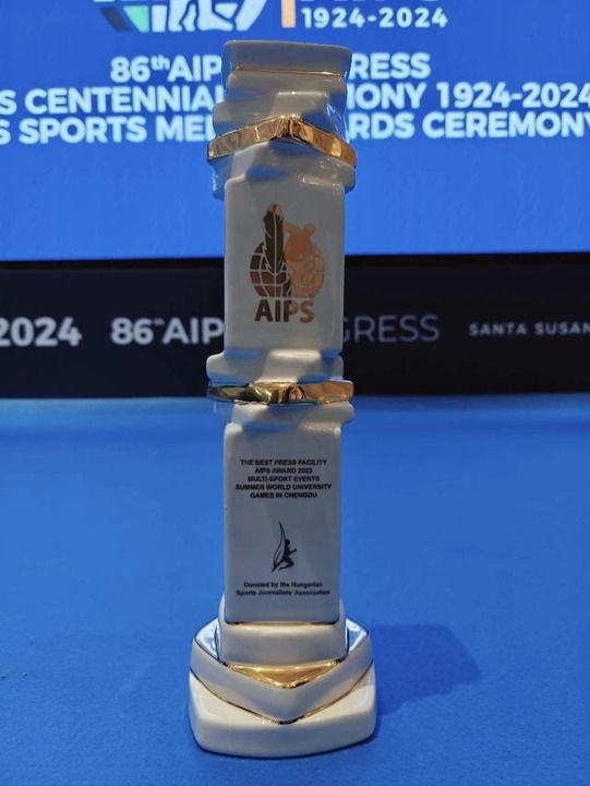 在2024年4月29日舉行的國際體育記者協(xié)會頒獎典禮上,成都大運(yùn)會獲得2023年度綜合賽事最佳媒體設(shè)施服務(wù)獎。新華社發(fā)