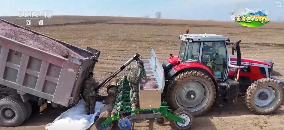 在鶴崗市興安區(qū)的萬畝良田,當?shù)睾献魃鐒倓傄M的智能施肥播種機憑借精準北斗定位系統(tǒng),將玉米種子精準植入黑土,同步完成定量施肥,大大提升了播種效率。