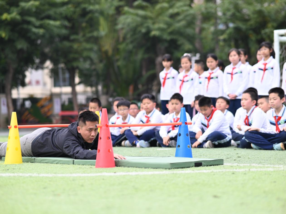 ↑“兵教師”陳翼桁在學校開展特色教學。蔡家榕 攝