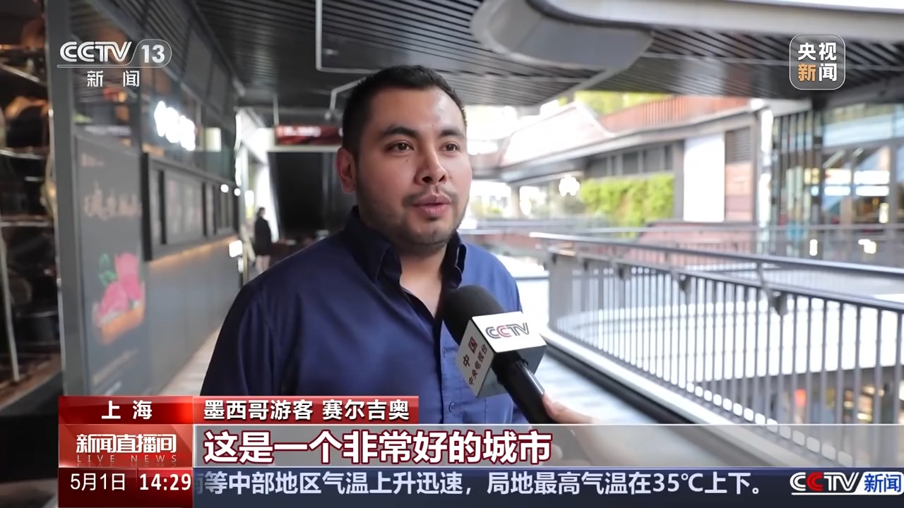 墨西哥游客 賽爾吉奧:事實(shí)上在這里你可以找到你想要的每一項(xiàng)技術(shù),你可以找到很多你想象不到的東西,所以我相信,外國(guó)人來上海購物真的很好,這是一個(gè)非常好的城市。