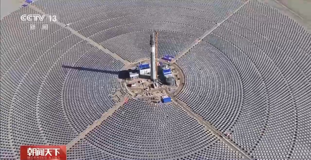 在甘肅, 我國(guó)“沙戈荒”新能源基地示范項(xiàng)目——中國(guó)綠發(fā)金塔多能互補(bǔ)電站建設(shè)加速推進(jìn),其中光熱電站的核心工序熔鹽液化工作,“五一”期間接近尾聲,電站投產(chǎn)后,每年可發(fā)電14.5億千瓦時(shí)。