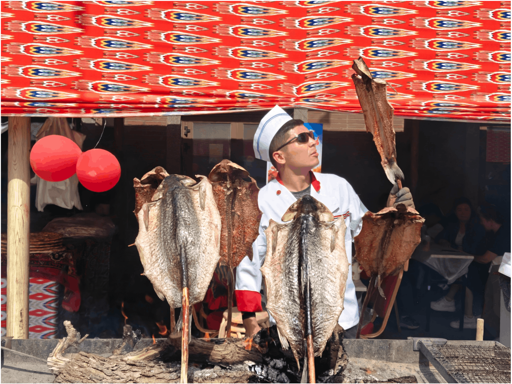 以“烤”為筆、以“味”為墨,2025新疆·尉犁第十二屆羅布人民俗燒烤季繪就一幅熱鬧非凡、充滿(mǎn)地方特色的鮮活畫(huà)卷,吸引全疆乃至全國(guó)游客共赴一場(chǎng)美味之約。百余個(gè)燒烤攤位沿青石板路在達(dá)西馕街有序排開(kāi),胡楊木炭在烤爐中明明滅滅,將印著艾德萊斯紋樣的遮陽(yáng)棚映成流動(dòng)的彩緞。本屆燒烤季活動(dòng)整合全縣8個(gè)鄉(xiāng)鎮(zhèn)的特色美食與文旅資源,帶動(dòng)200余戶(hù)農(nóng)牧民增收,讓烤肉、烤鴿子、烤魚(yú)等“鄉(xiāng)味”變身“網(wǎng)紅”,推動(dòng)“舌尖經(jīng)濟(jì)”向“品牌經(jīng)濟(jì)”不斷升級(jí)。