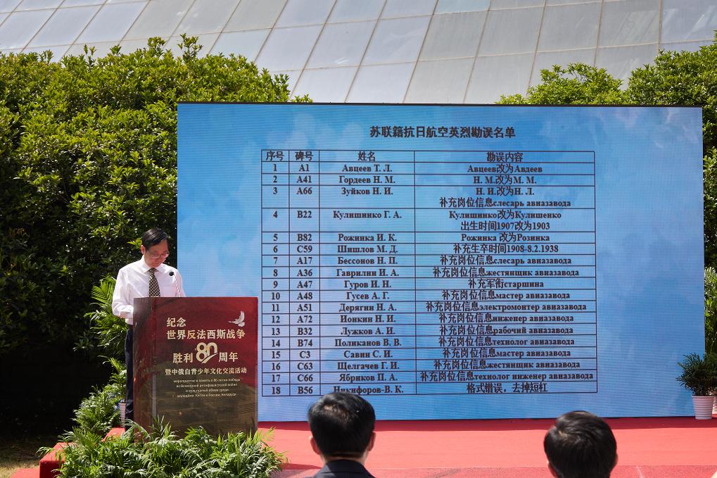“我們期待與俄方相關(guān)部門、機(jī)構(gòu)和民間組織一道,尋找更多蘇聯(lián)籍抗日航空英烈史料,讓這些為了正義與和平而犧牲的年輕人的事跡,永遠(yuǎn)記載在歷史的豐碑上?!毖ι徴f(shuō)。