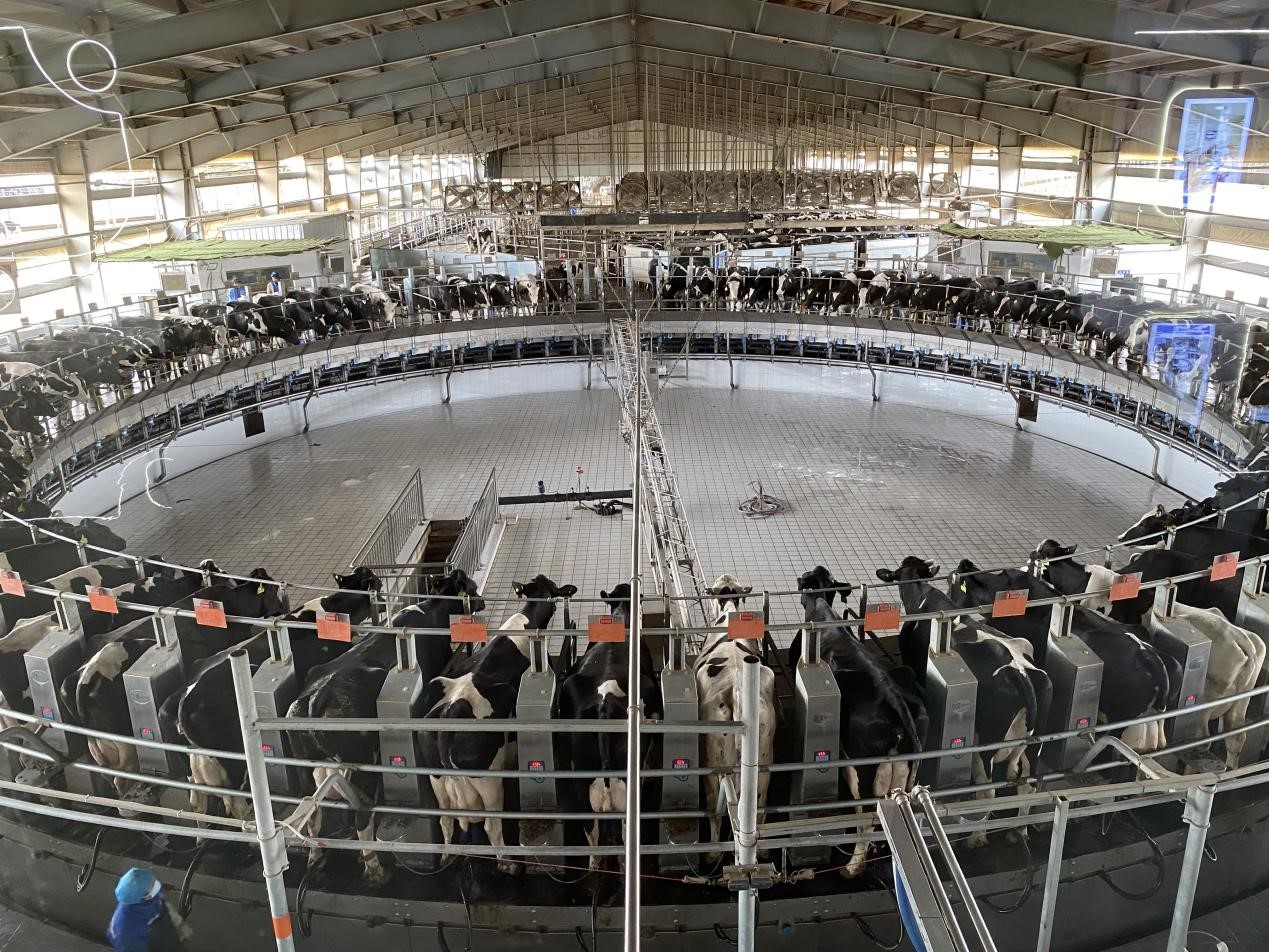 圖為天瑞祥牧場(chǎng)全自動(dòng)轉(zhuǎn)盤(pán)式擠奶機(jī)。冶明偉攝