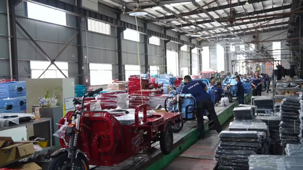 近日,在四川眉山天府新區(qū)雙勝新能源車業(yè)有限責(zé)任公司的生產(chǎn)車間流水線上,工人們正緊鑼密鼓組裝一批即將發(fā)往非洲、東南亞的電動三輪車。