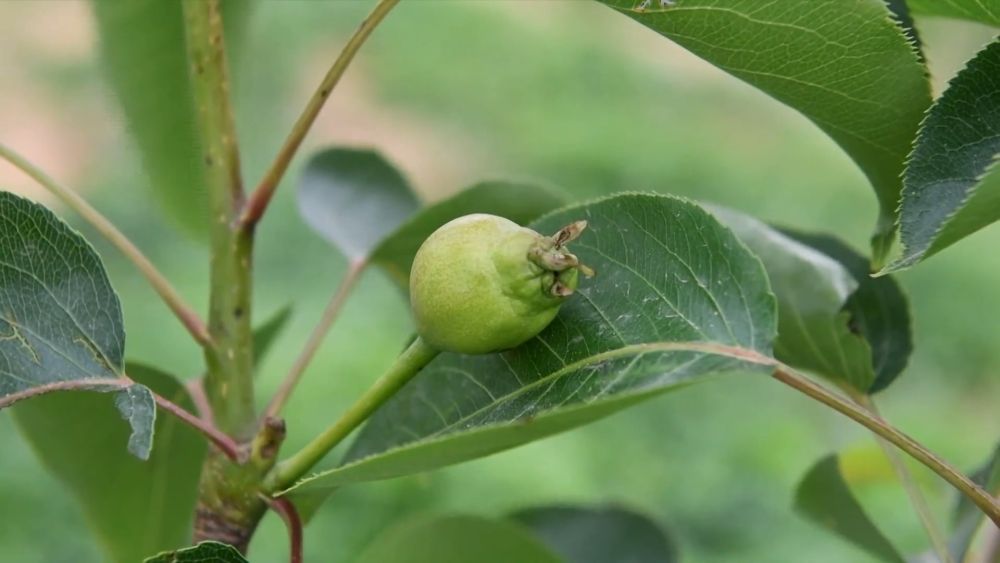 在淄博市沂源縣魯村鎮(zhèn)龍子峪村酥梨園,工作人員在進行夏季管護。幾年前這里還是一座荒山,2022年,沂源桃花島農(nóng)業(yè)發(fā)展有限公司流轉(zhuǎn)了這片山地,改造為酥梨園。