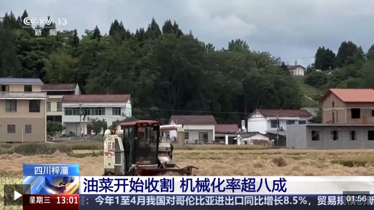 這幾天,四川綿陽梓潼縣油菜喜獲豐收,在文昌鎮(zhèn)龍口村一處農(nóng)業(yè)園區(qū),六臺聯(lián)合收割機(jī)來回穿梭,隨著收割機(jī)齒輪轉(zhuǎn)動,油菜稈被卷起送入收割臺,在這里完成收割、脫粒、分離、粉碎等工序,油菜果殼和油菜秸稈則被自動粉碎成末,均勻地拋灑在田間。脫粒的油菜籽被運(yùn)往烘干房進(jìn)行烘干,然后售賣或者用來榨油食用。據(jù)介紹,今年梓潼縣組織了1200多臺收割機(jī)幫助農(nóng)戶收割油菜,油菜機(jī)械化率超過八成,節(jié)約成本超過三成,預(yù)計(jì)本月底前可以完成收割。