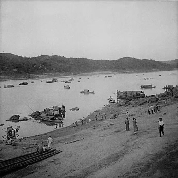 科研機(jī)構(gòu)、高校內(nèi)遷李莊時在碼頭搬運(yùn)行李的老照片。(李莊古鎮(zhèn)景區(qū)管委會供圖)