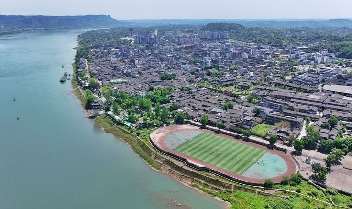 今天的李莊鎮(zhèn)上,位置最好的地方修成了李莊中學(xué)。學(xué)校操場坐落在長江邊,白天供孩子們運(yùn)動,夜里向公眾開放。