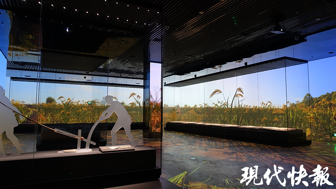 和中國(guó)考古博物館一樣,蘇州考古博物館在展陳上也是“倉(cāng)儲(chǔ)式”,1200余件出土文物串聯(lián)起從新石器時(shí)代到春秋吳國(guó)都城的文明序列。最惹眼的是被打包裝進(jìn)展廳的虎丘路新村孫吳一號(hào)墓,面積足足150平方米,讓觀眾在博物館里就能體驗(yàn)一把考古探秘的真實(shí)體驗(yàn)。