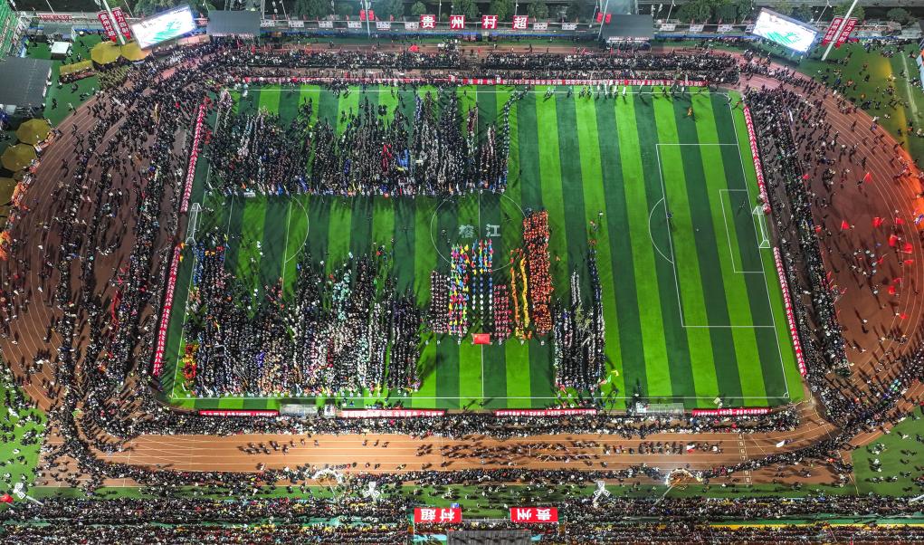2025年貴州“村超”開幕式現(xiàn)場(2025年1月4日攝,無人機(jī)照片)。新華社記者 楊文斌 攝
