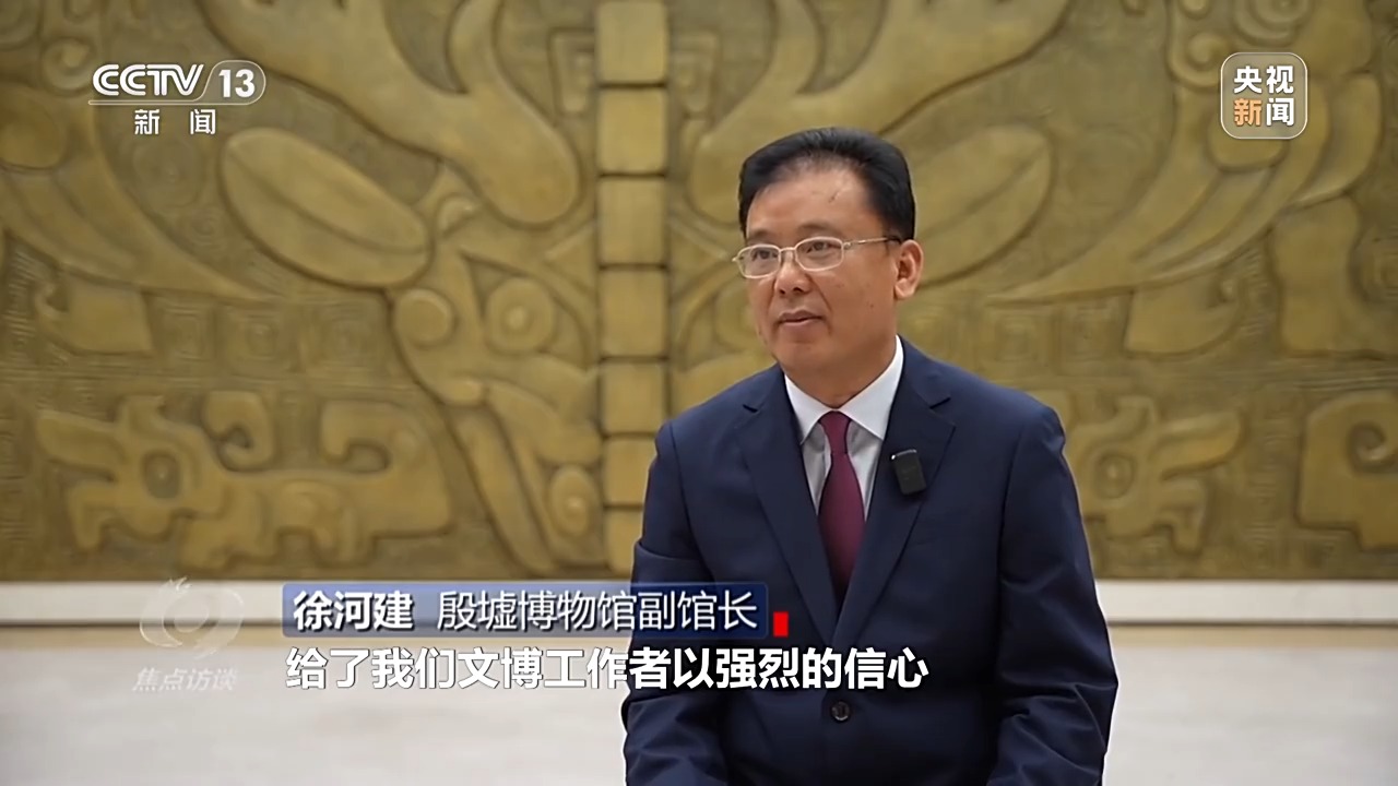 徐河建:總書記到殷墟考察給我們文博工作者強烈的信心,給我們指明了前進的方向、提供了根本遵循。那么,如何傳承?我們綜合運用科技賦能、人工智能、數字顯能,讓文物活起來。