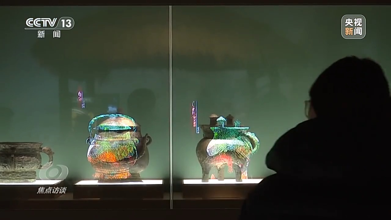 文物展柜上,透明LED屏與數字虛擬影像結合,不僅精準“復刻”對應的青銅器,也讓觀眾得以更直觀地了解其形制與用途。在裸眼3D技術加持下,珍貴的文物突破了靜態(tài)展示的局限。