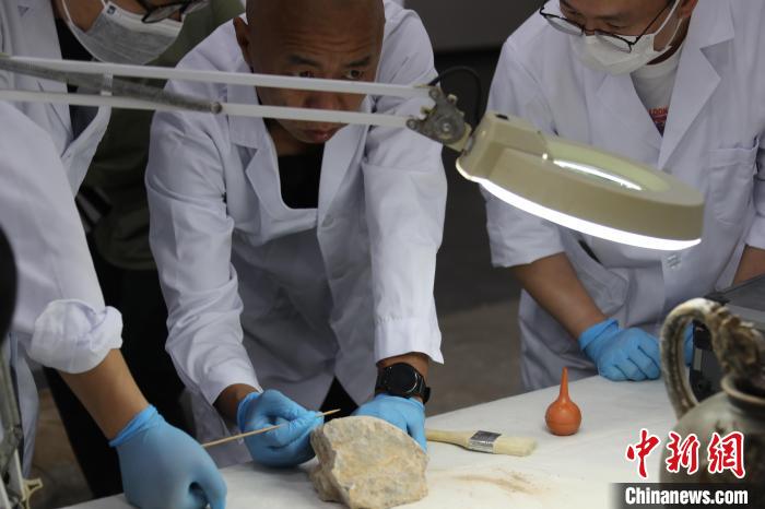 5月20日,河南洛陽,龍門石窟研究院的“文物醫(yī)生”對文物進(jìn)行修復(fù)。 中新社記者 闞力 攝