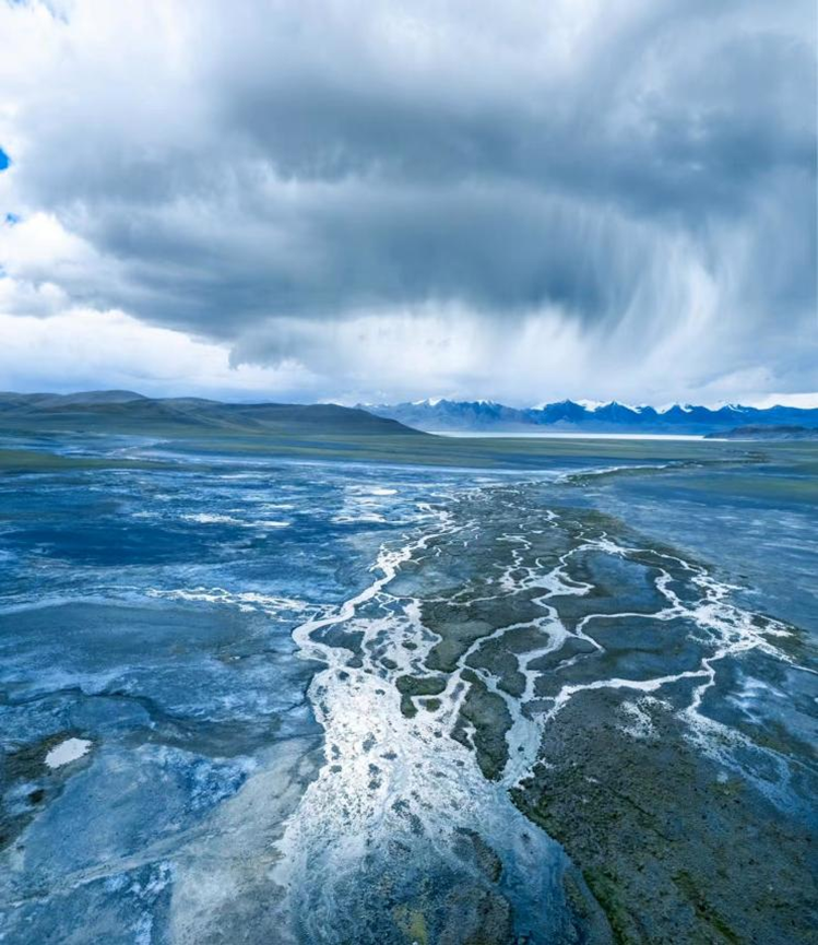 李冬:這張作品是《颶風(fēng)》,拍攝于2022年,采用無人機(jī)拍攝完成創(chuàng)作。當(dāng)時,我和幾個攝影師朋友同行自駕來到了阿里地區(qū),為探尋獨特的拍攝視角,我們決定不走常規(guī)路線。通過地圖研究,我們發(fā)現(xiàn)在岡底斯山脈的腹地有一個地方叫帕龍錯,雖然能夠在網(wǎng)上搜索到帕龍措,但是鮮有攝影師涉足此地,這就激發(fā)了我們的探索欲,到不到單說,就是想過去看看。