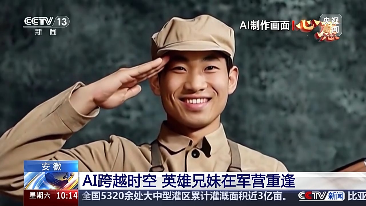 相見,是間隔在生死之間的人們最難以實(shí)現(xiàn)的夙愿??偱_記者送給了李家英老人一份特殊的禮物,借助總臺的AI技術(shù),讓同是軍人的兄妹倆在軍營實(shí)現(xiàn)了跨越時空的團(tuán)聚。