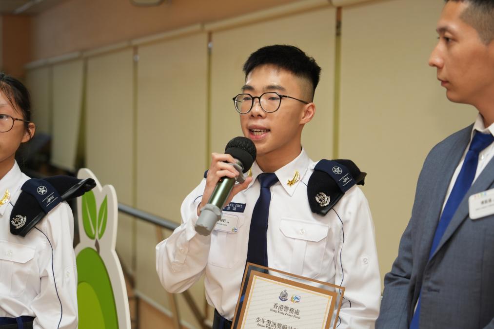 張灝泓如今是旺角少年警訊資深領(lǐng)袖,更是少年警訊獎(jiǎng)勵(lì)計(jì)劃2023及2024年連續(xù)兩屆金星得獎(jiǎng)?wù)?。“少年警訊是我投身警?duì)的重要啟蒙者,這些經(jīng)歷不僅驗(yàn)證了我對(duì)警務(wù)工作的向往,更堅(jiān)定我未來(lái)投身警隊(duì)、投考督察的志向。”