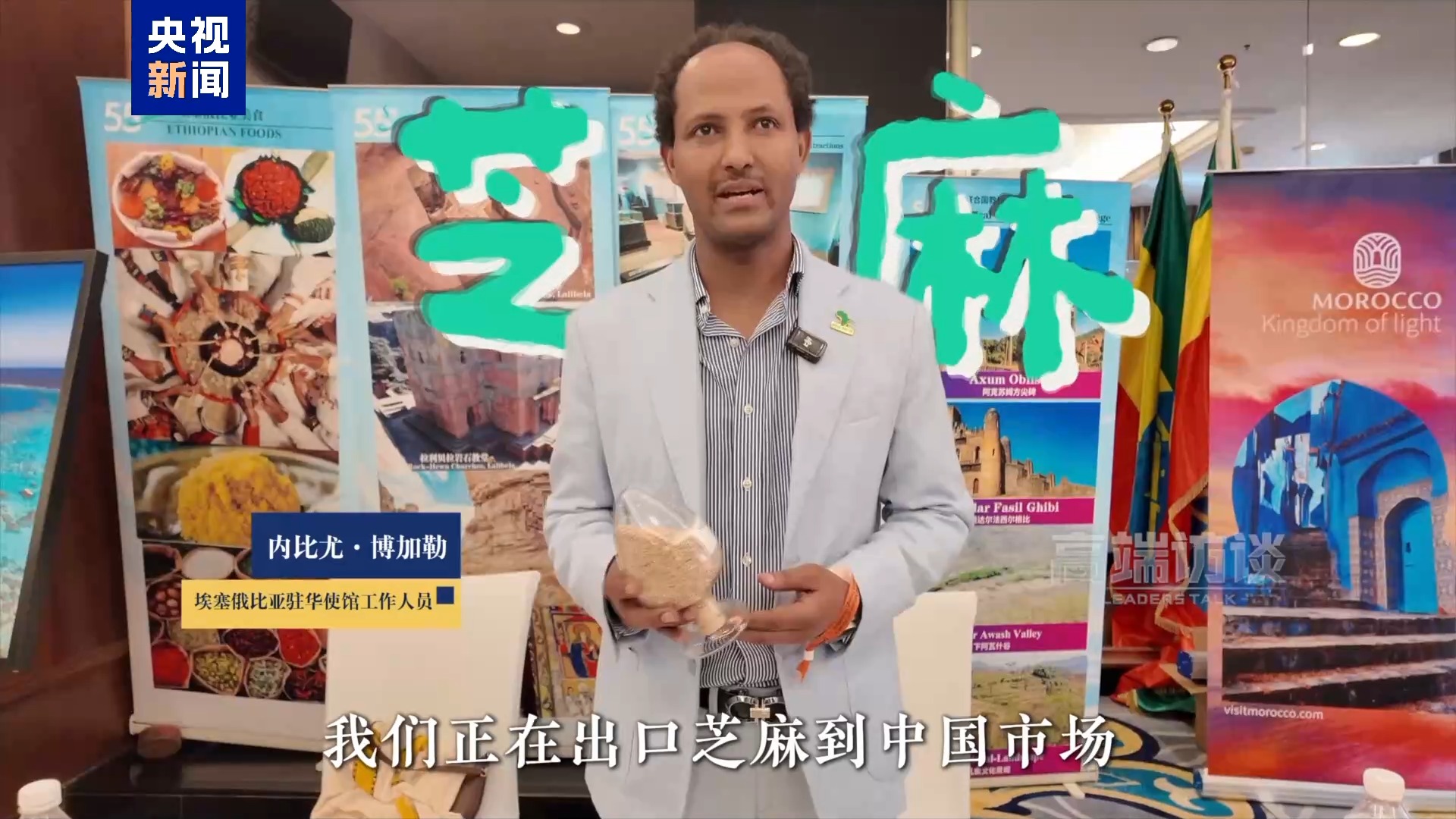 埃塞俄比亞駐華使館工作人員 內(nèi)比尤·博加勒:這是芝麻,我們正在出口芝麻到中國市場。這是埃塞俄比亞的優(yōu)質芝麻產(chǎn)品,它們以自然有機聞名。我們受惠于中國的貿(mào)易政策,借助中非合作的平臺將這些芝麻出口到中國市場。