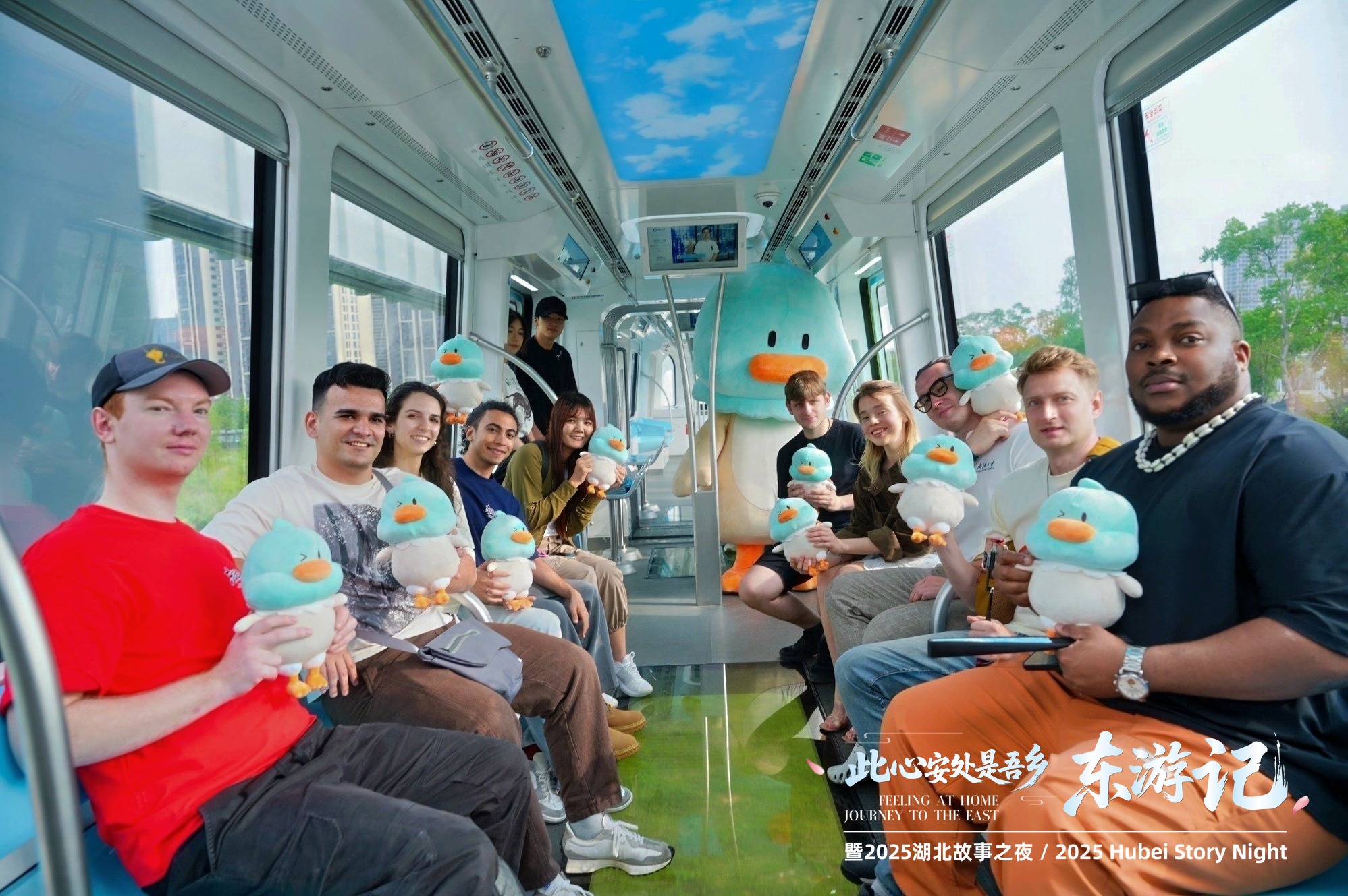 武漢新晉網(wǎng)紅打卡地怎么少得了光谷空軌,在吉祥物青青鴨的帶領(lǐng)下,體驗官們踏上了空中交通之旅。270°全景視窗將城市天際線變成流動畫卷,無人駕駛系統(tǒng)在空中穿行如科幻大片。這種新奇的乘車體驗引得大家連連贊嘆,俄羅斯留學(xué)生可欣興奮的說,“我感覺自己飛起來了,像鳥一樣飄在空中。”