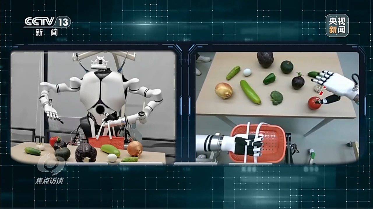 在中國科學(xué)院自動(dòng)化研究所多模態(tài)人工智能系統(tǒng)全國重點(diǎn)實(shí)驗(yàn)室,科研人員正在對人形機(jī)器人Q5進(jìn)行語言指令和視覺跟隨訓(xùn)練。