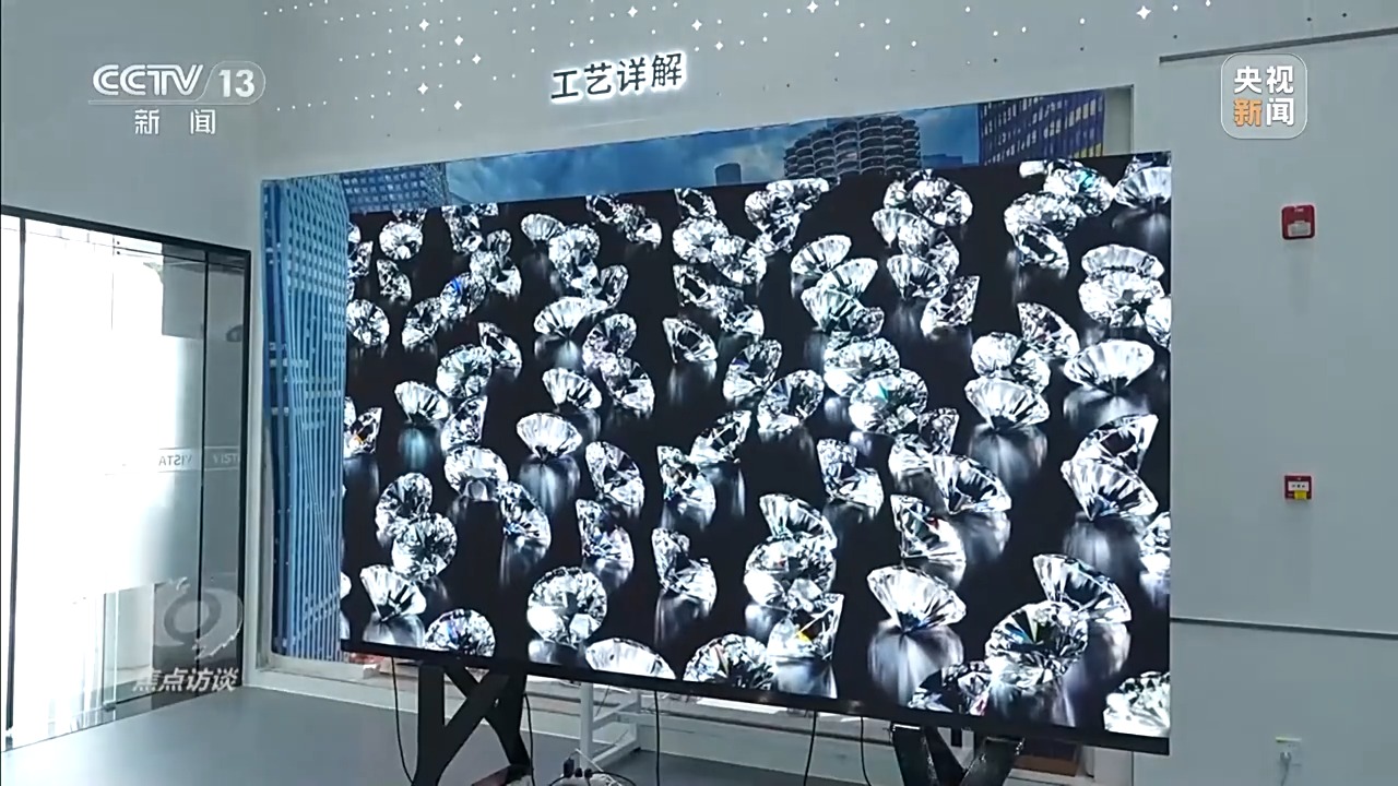 維信諾Micro-LED技術(shù)負(fù)責(zé)人、成都辰顯光電有限公司總經(jīng)理 黃秀頎:這款產(chǎn)品歷經(jīng)了8年的研發(fā)時(shí)間,到現(xiàn)在推出全球最新的135英寸TFT基Micro-LED(顯示屏)。它的特點(diǎn),亮度非常高,而且色彩非常細(xì)膩,還原度很高。但是這塊屏是拼接出來的,上面總共有2400萬顆LED發(fā)光點(diǎn),大的135英寸里面有200片屏,每個(gè)屏還要把它組裝成箱體,這里有25個(gè)箱體。可以根據(jù)客戶的需求定制大小,只要把箱體拼上去就可以無限擴(kuò)展,現(xiàn)在拼縫控制的是幾十個(gè)微米量級,大概就是頭發(fā)絲直徑的五分之一。