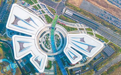 浙江金華金漪湖科創(chuàng)智造產(chǎn)業(yè)園云蝶中心項(xiàng)目外景。胡肖飛攝(人民視覺(jué))