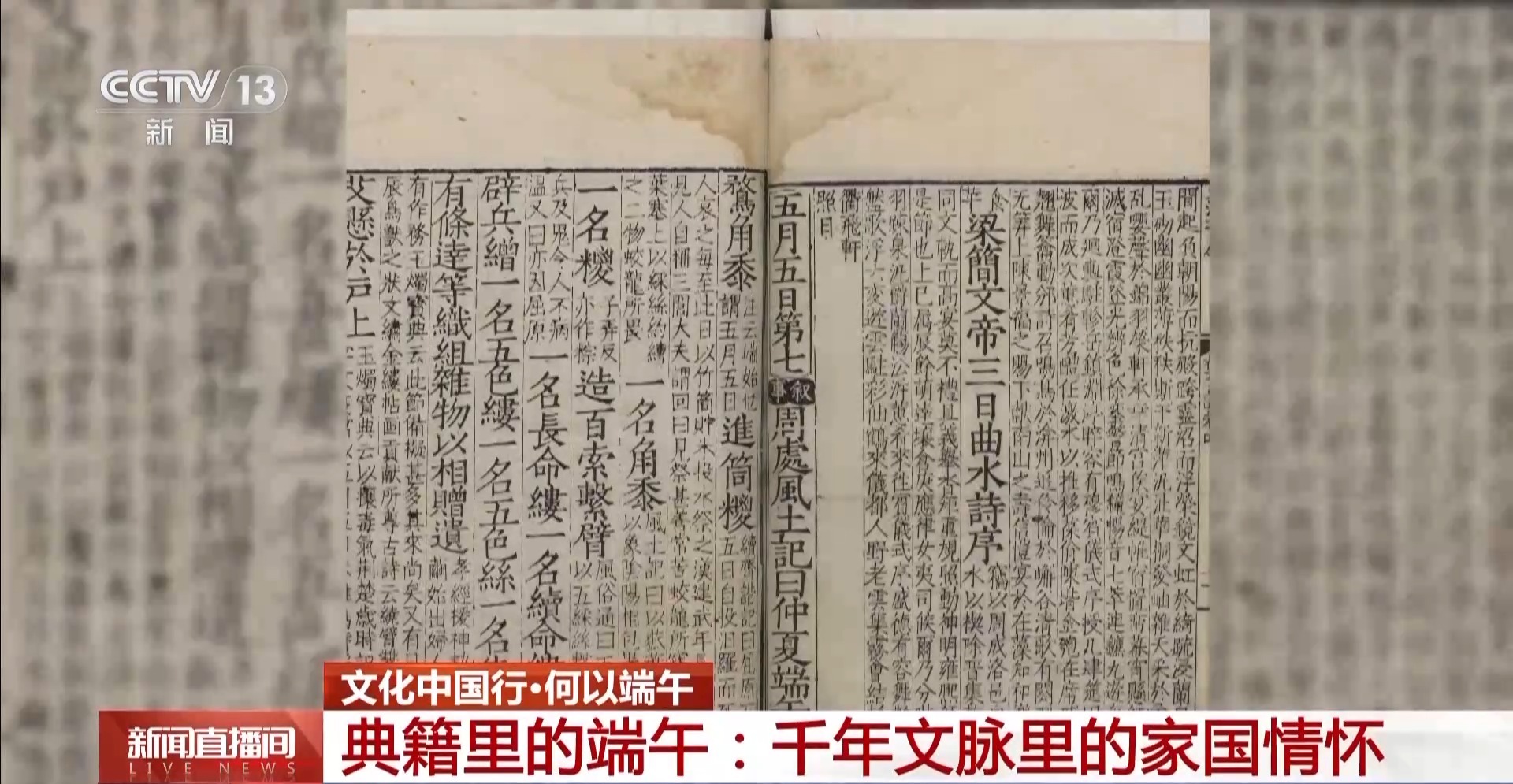 端午節(jié)是我國首個入選世界非物質(zhì)文化遺產(chǎn)的節(jié)日,既有獨特的自然物候特征,又有深厚的民族文化內(nèi)涵。從典籍里,我們?nèi)テ纷x端午,更能感受這種延續(xù)千年的自然風(fēng)貌和跨越古今的家國情懷。