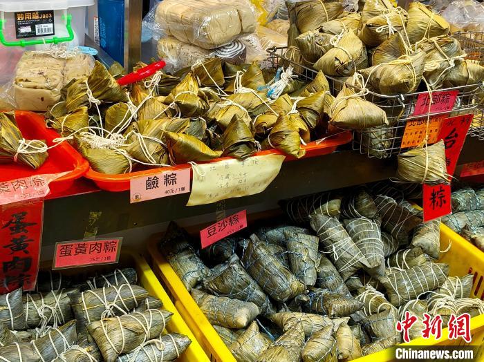 臺灣端午節(jié)連假期間,臺北南門市場的粽子種類豐富。中新社記者 張曉曦 攝