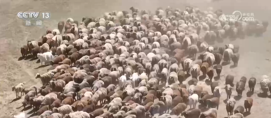 在新疆阿勒泰福??h的沙爾布拉克草原,當(dāng)?shù)啬撩翊┲恋奶厣棧瑤е耶?dāng),趕著牛羊,正在進(jìn)行轉(zhuǎn)場(chǎng)。今年有45萬(wàn)頭的牛羊經(jīng)過(guò)沙爾布拉克草原千年牧道,轉(zhuǎn)場(chǎng)到水草豐美的夏牧場(chǎng)。