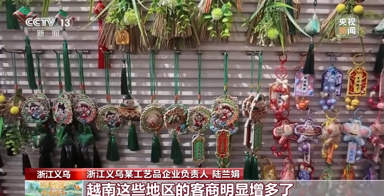 浙江義烏某工藝品企業(yè)負(fù)責(zé)人 陸蘭娟:以前香囊的消費(fèi)群體以國內(nèi)為主,這兩年,越來越多的外國客商來咨詢。前年賣出了15萬個(gè)左右,去年訂單翻了一番,有30萬個(gè)。那今年的訂單也明顯超過了過去,尤其是新加坡、馬來西亞、越南這些地區(qū)的客商明顯增多。
