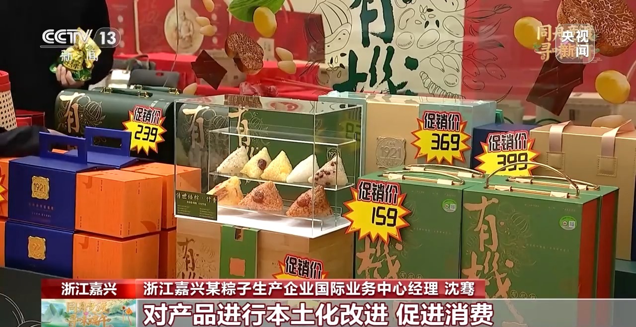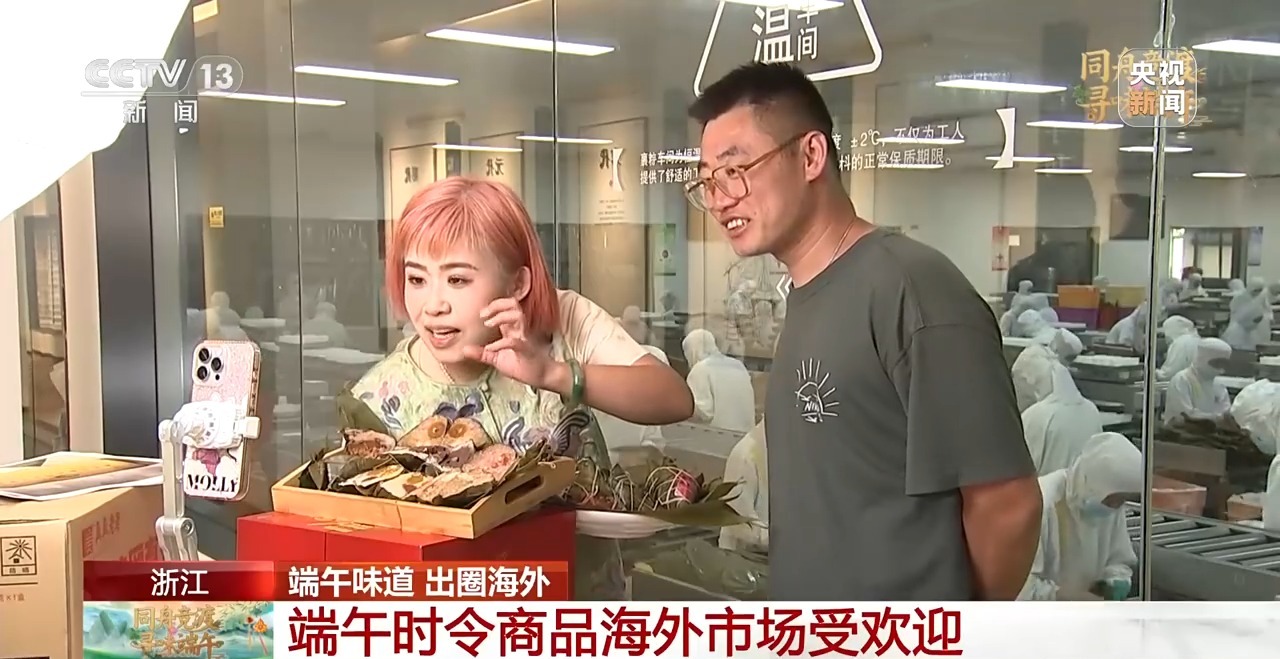 浙江嘉興某粽子生產(chǎn)企業(yè)國際業(yè)務(wù)中心經(jīng)理 沈騫:我們在直播中會展示粽子制作過程、食品溯源以及科普習(xí)俗,讓國外消費(fèi)者了解粽子文化。我們還積極參加一些國內(nèi)外的展會,結(jié)合當(dāng)?shù)匚幕拖M(fèi)習(xí)慣,對產(chǎn)品進(jìn)行本土化改進(jìn),促進(jìn)消費(fèi)。今年,我們的粽子出口到了柬埔寨的商超和網(wǎng)購平臺,在韓國大棗粽和豆沙粽非常受歡迎。